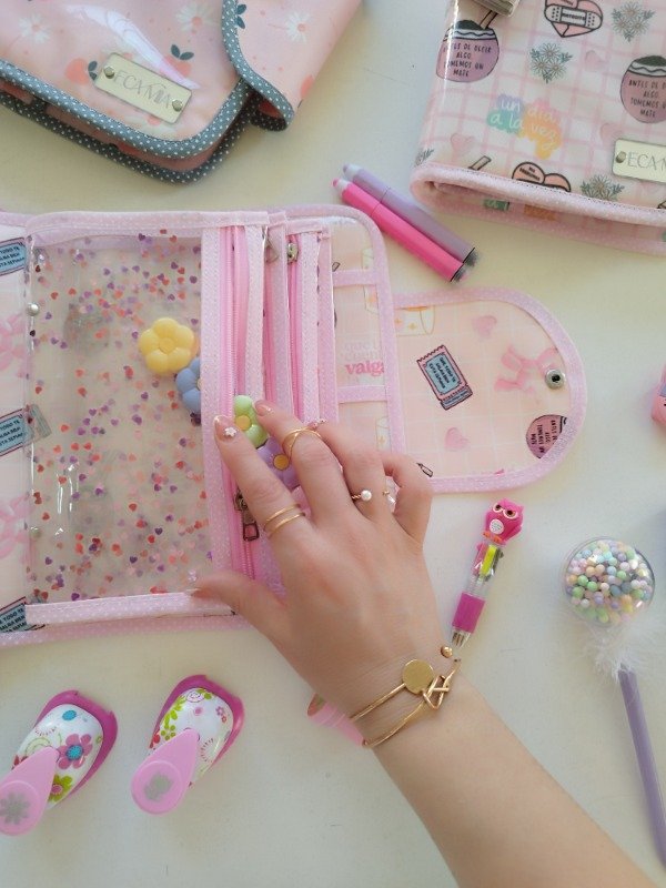 Este diseño 4 en 1 se abre y se convierte en un organizador único, práctico y elegante. Ideal para llevar maquillaje, útiles, accesorios o lo que vos necesites.